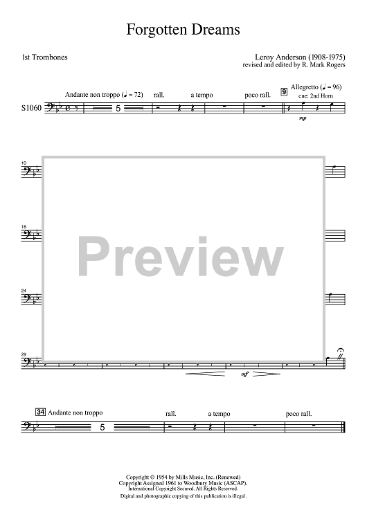 Digital Sheet Music for Forgotten Dreams - 1st Trombones by Leroy Anderson, R. Mark Rogers scored for Symphonic Band; id:507446