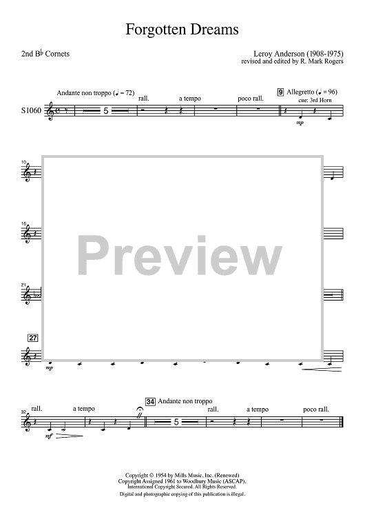 Digital Sheet Music for Forgotten Dreams - 2nd Bb Cornets by Leroy Anderson, R. Mark Rogers scored for Symphonic Band; id:507438