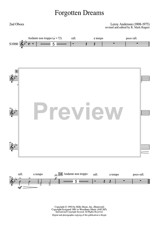 Digital Sheet Music for Forgotten Dreams - 2nd Oboes by Leroy Anderson, R. Mark Rogers scored for Symphonic Band; id:507422