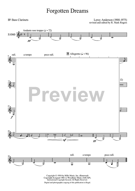 Digital Sheet Music for Forgotten Dreams - Bb Bass Clarinets by Leroy Anderson, R. Mark Rogers scored for Symphonic Band; id:507428