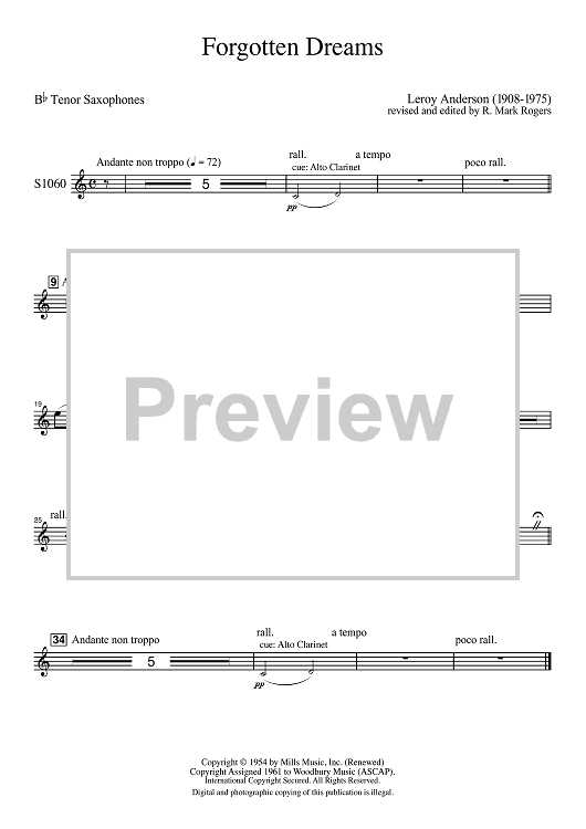 Digital Sheet Music for Forgotten Dreams - Bb Tenor Saxophones by Leroy Anderson, R. Mark Rogers scored for Symphonic Band; id:507435