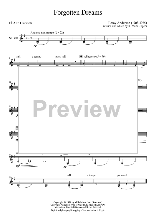 Digital Sheet Music for Forgotten Dreams - Eb Alto Clarinets by Leroy Anderson, R. Mark Rogers scored for Symphonic Band; id:507427