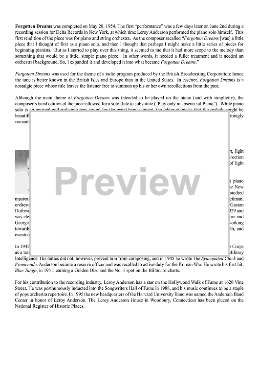 "Forgotten Dreams - Full Score" Sheet Music by Leroy Anderson