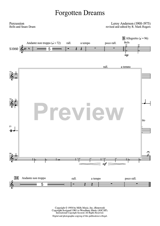 Digital Sheet Music for Forgotten Dreams - Percussion by Leroy Anderson, R. Mark Rogers scored for Symphonic Band; id:507453