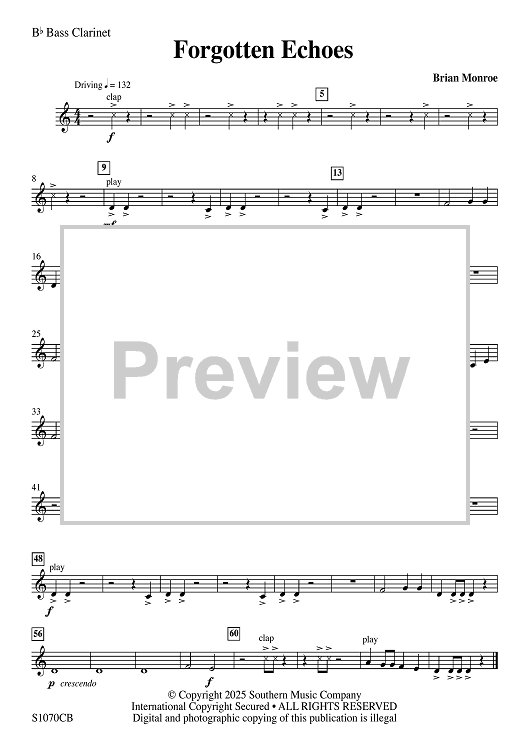Digital Sheet Music for Forgotten Echoes - Bb Bass Clarinet by Brian Monroe scored for Concert Band; id:507733
