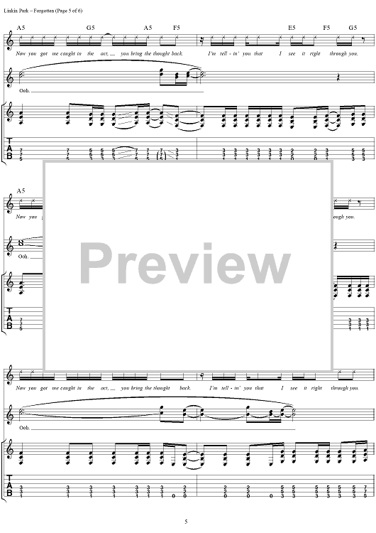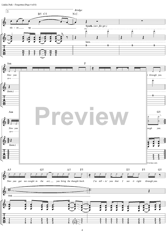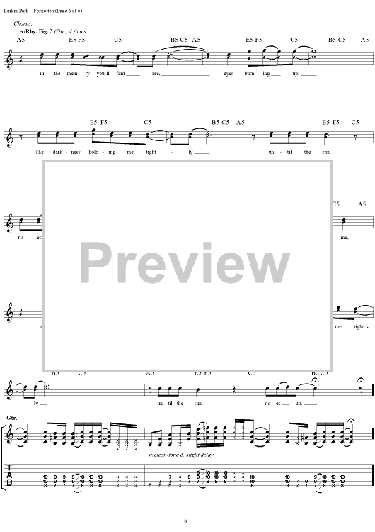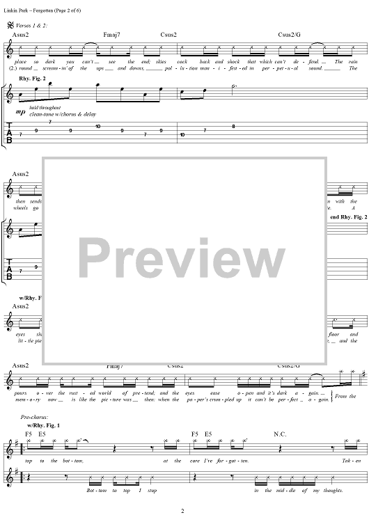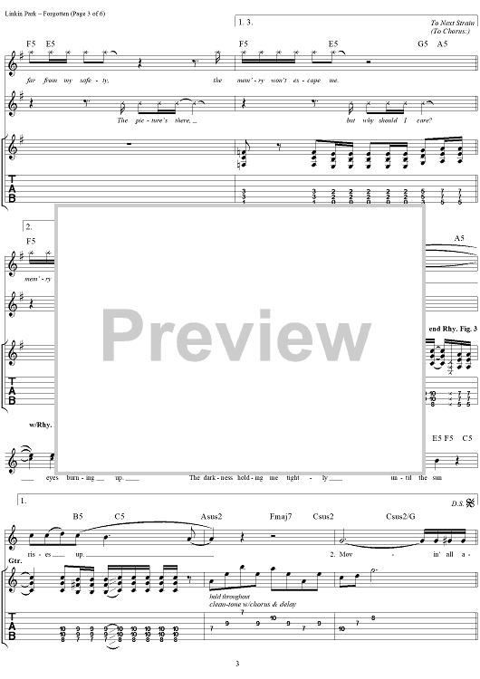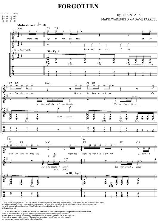 Digital Sheet Music for Forgotten by Linkin Park, Mark Wakefield, Dave Farrell scored for Guitar Tab/Vocal; id:285785