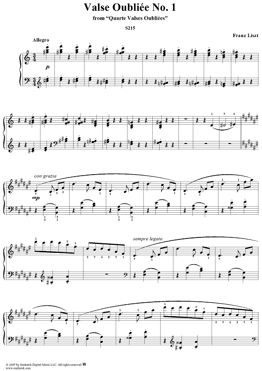 Digital Sheet Music for Forgotten Waltz No. 1: Première Valse oubliée by Franz Liszt scored for Piano Solo; id:308847