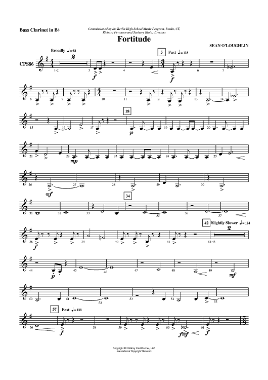 Digital Sheet Music for Fortitude - Bass Clarinet by Sean O'Loughlin scored for Concert Band; id:405559