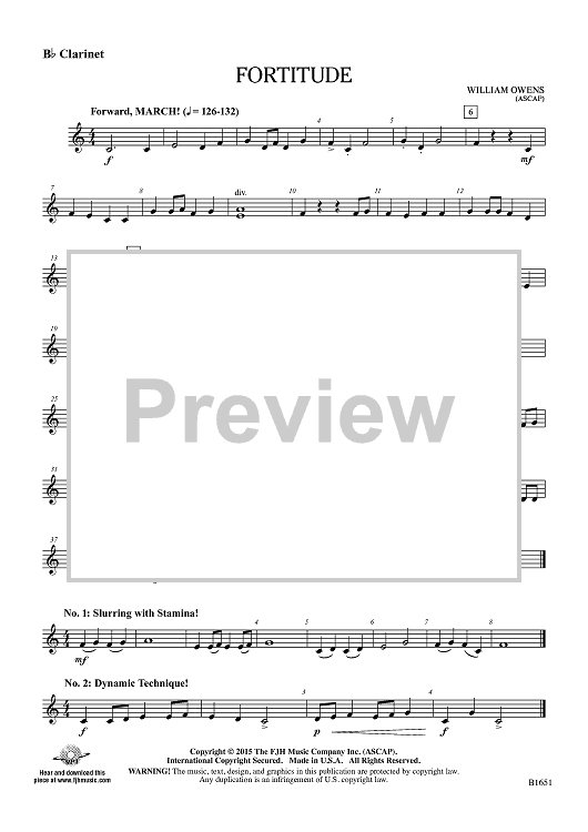 "Fortitude (Concert March) - Bb Clarinet" Sheet Music by William Owens
