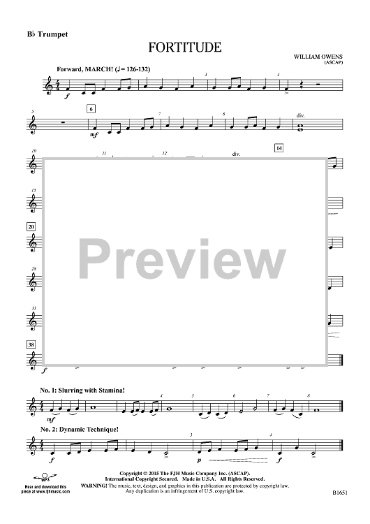 "Fortitude (Concert March) - Bb Trumpet" Sheet Music by William Owens