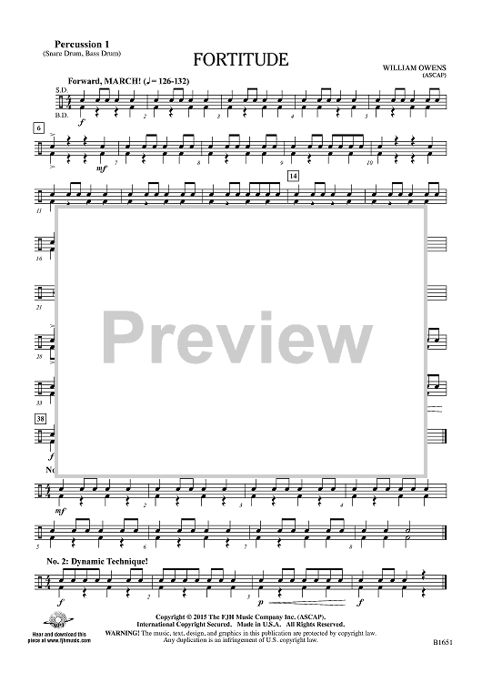 "Fortitude (Concert March) - Percussion 1" Sheet Music by William Owens