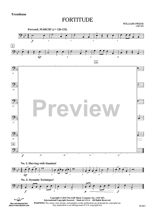 Digital Sheet Music for Fortitude (Concert March) - Trombone by William Owens scored for Concert Band; id:455428