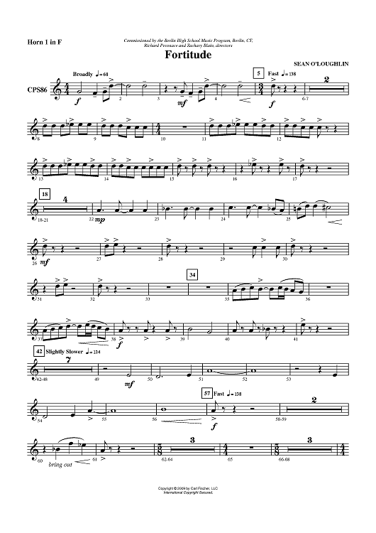 Digital Sheet Music for Fortitude - Horn in F 1 by Sean O'Loughlin scored for Concert Band; id:405568