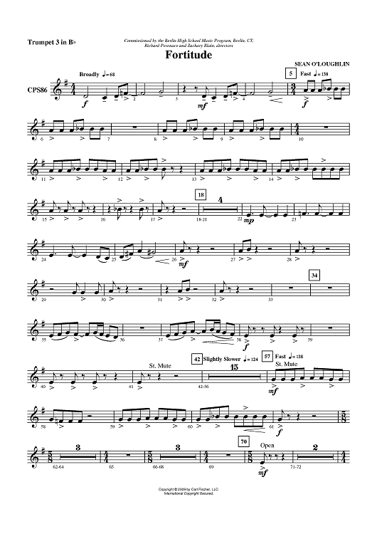 Digital Sheet Music for Fortitude - Trumpet 3 in B-flat by Sean O'Loughlin scored for Concert Band; id:405567