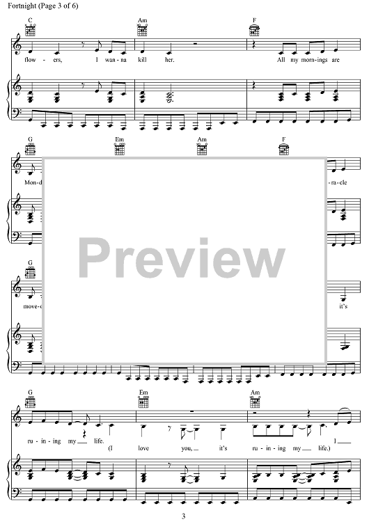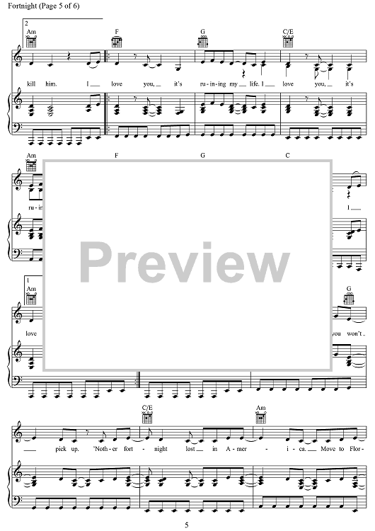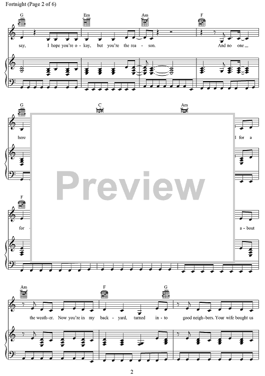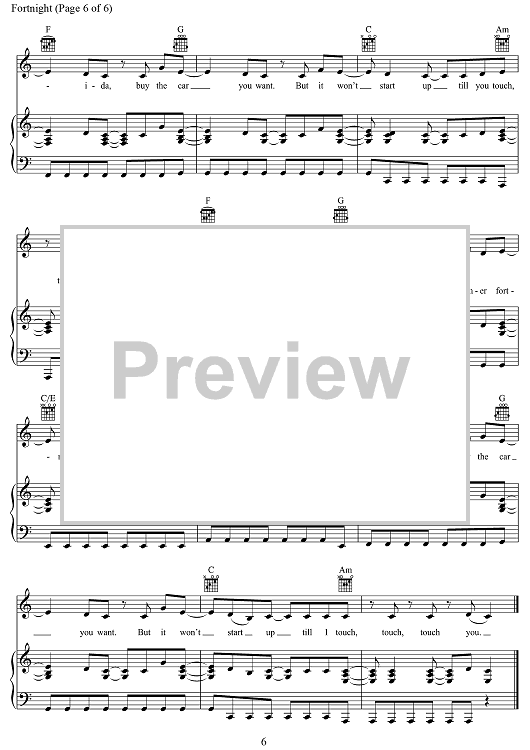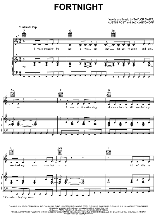 Digital Sheet Music for Fortnight by Taylor Swift, Jack Antonoff, Austin Richard Post scored for Piano/Vocal/Chords; id:501840