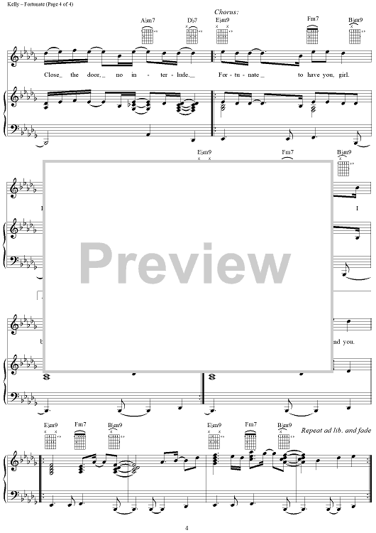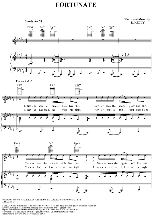 Digital Sheet Music for Fortunate by R. Kelly, Maxwell scored for Piano/Vocal/Chords; id:119729