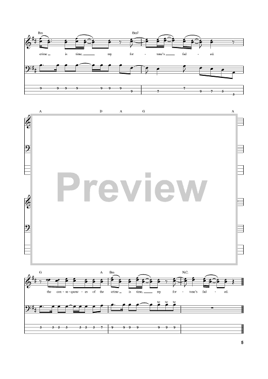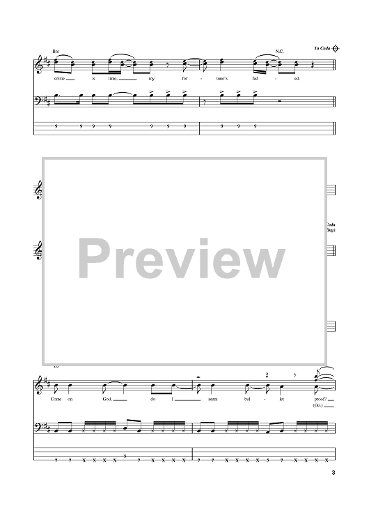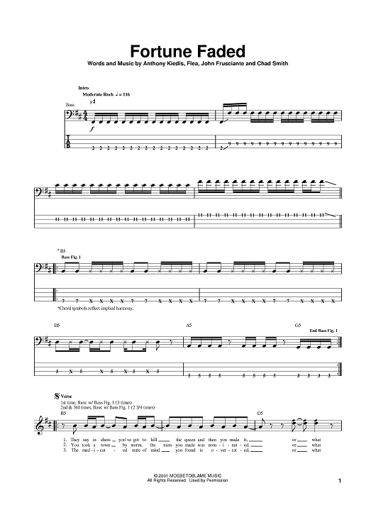 Digital Sheet Music for Fortune Faded by Flea, John Frusciante, Anthony Kiedis, Red Hot Chili Peppers scored for Bass Tab; id:374154