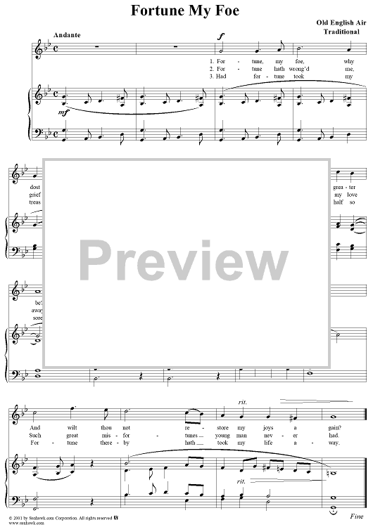 Digital Sheet Music for Fortune my foe by Traditional scored for Piano/Vocal; id:258917