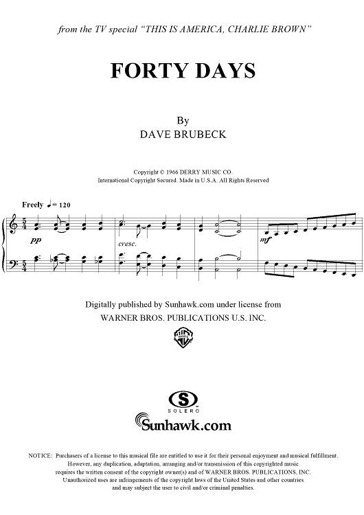 Digital Sheet Music for Forty Days by Dave Brubeck scored for Piano Solo; id:276017