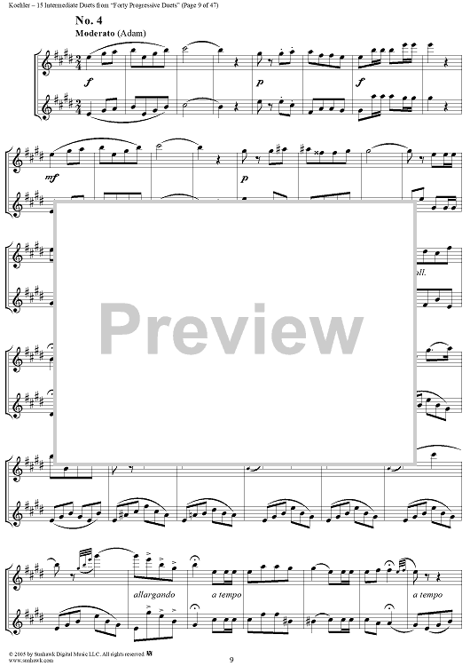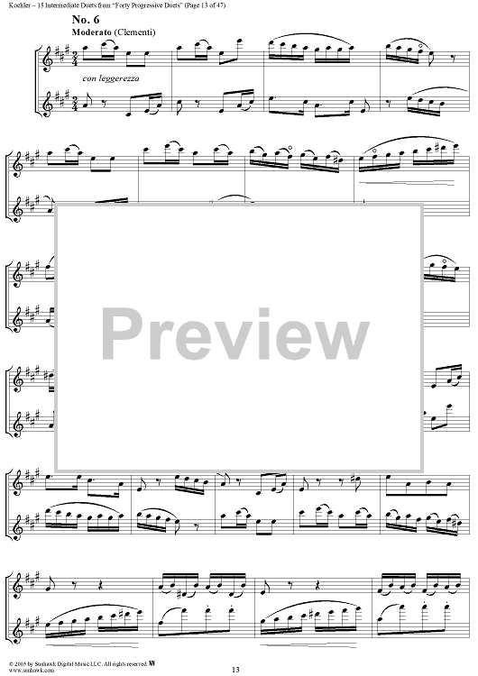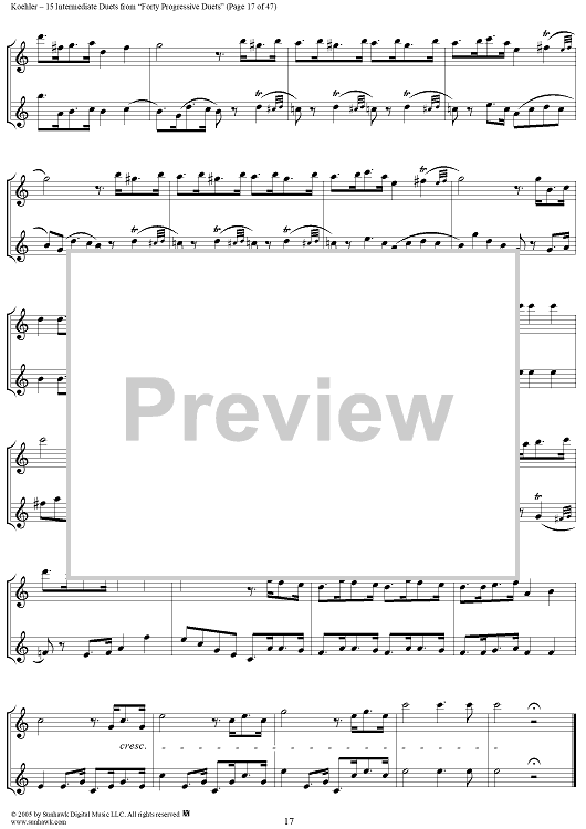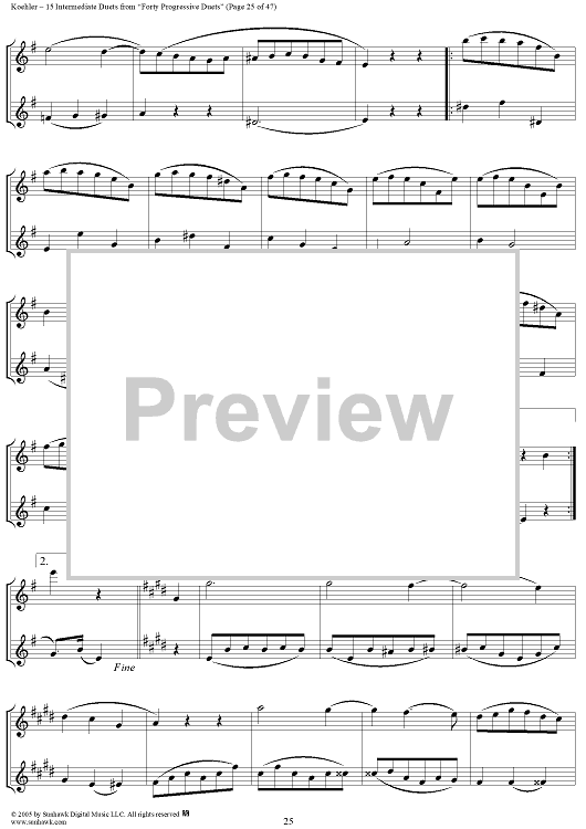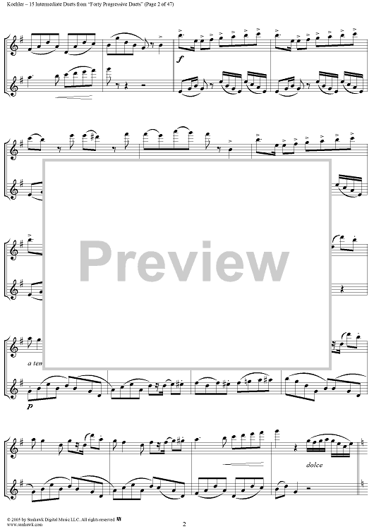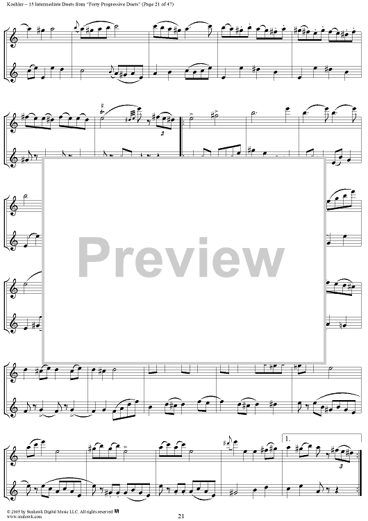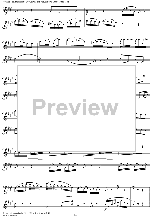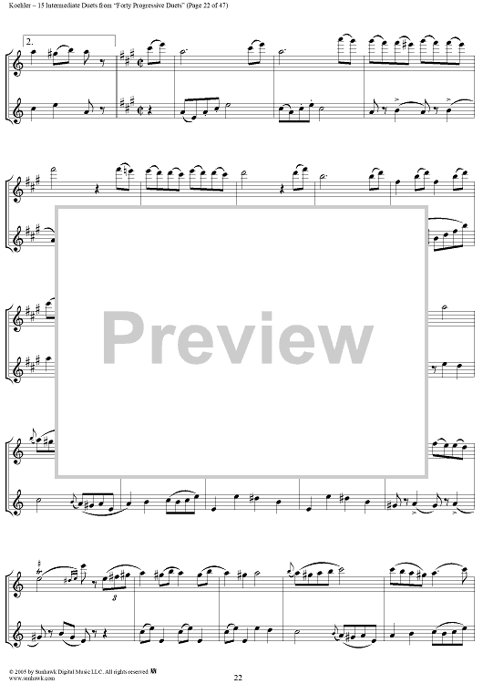 Digital Sheet Music for Forty Progressive Duets, Op. 55, Nos. 26 - 40 by Ernesto Koehler scored for Two Flutes; id:309870