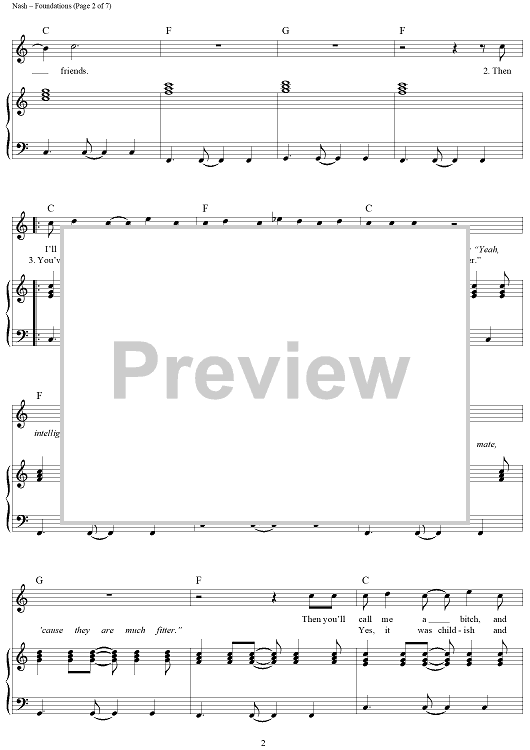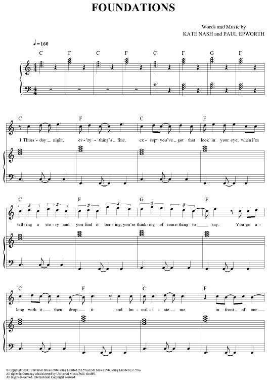 Digital Sheet Music for Foundations by Kate Nash, Paul Epworth scored for Piano/Vocal/Chords; id:366123