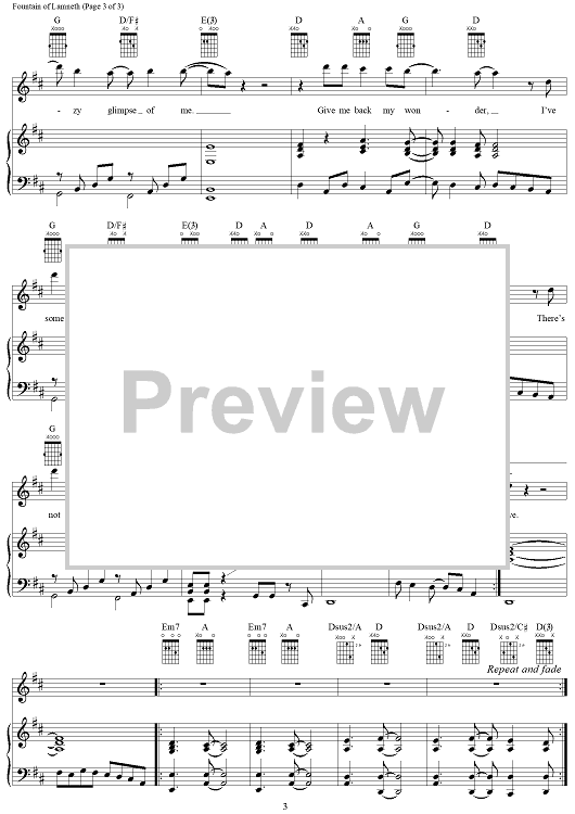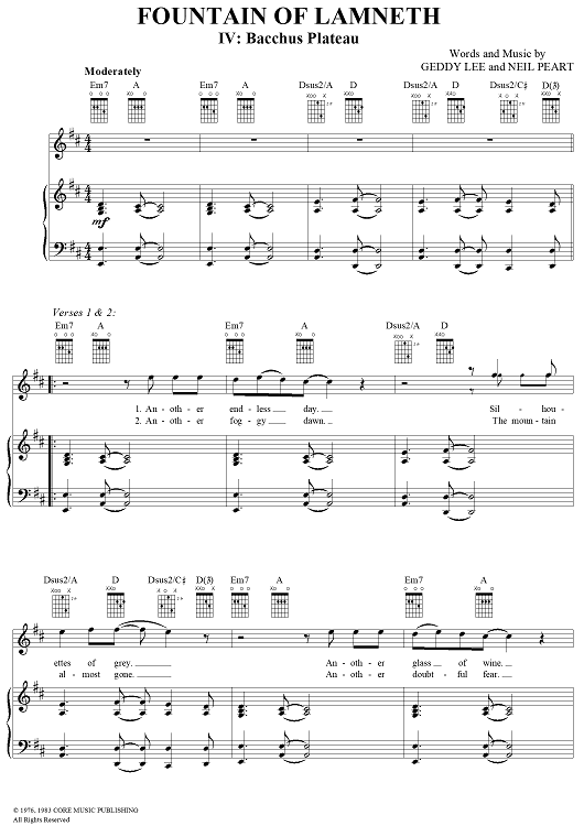 Digital Sheet Music for Fountain of Lamneth, Part 4: Plateau by Rush, Geddy Lee, Neil Peart scored for Piano/Vocal/Chords; id:250532