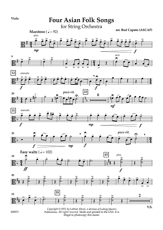 "Four Asian Folk Songs - Viola" Sheet Music by Traditional Asian