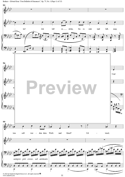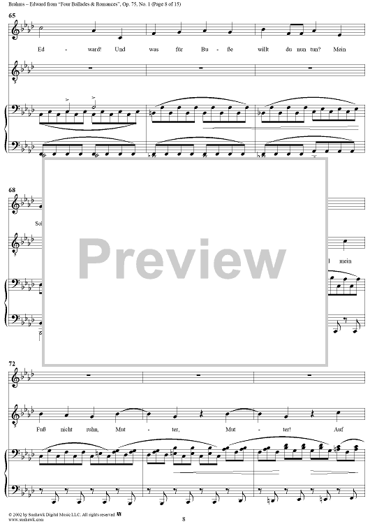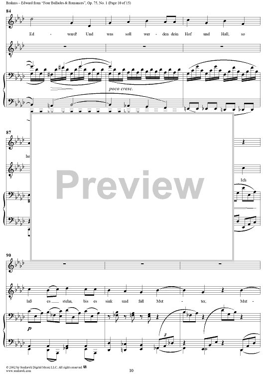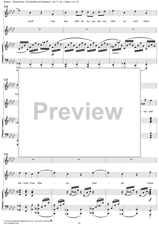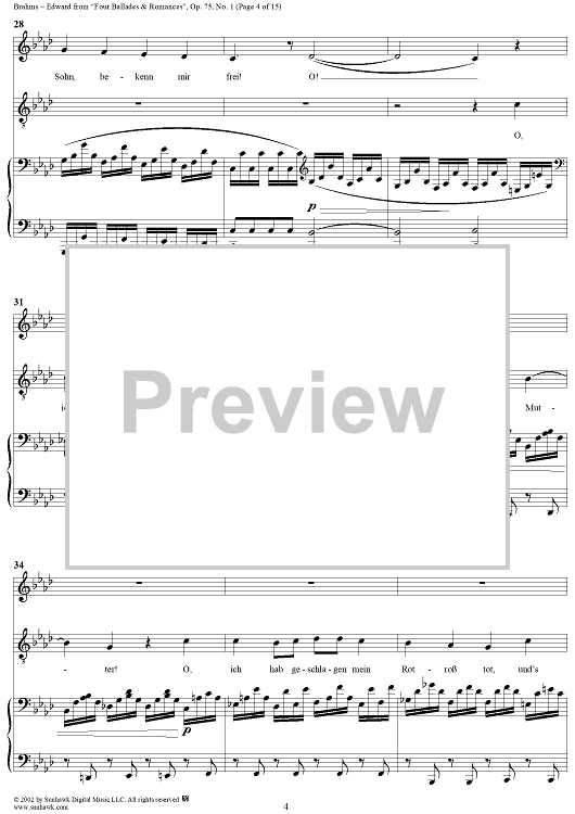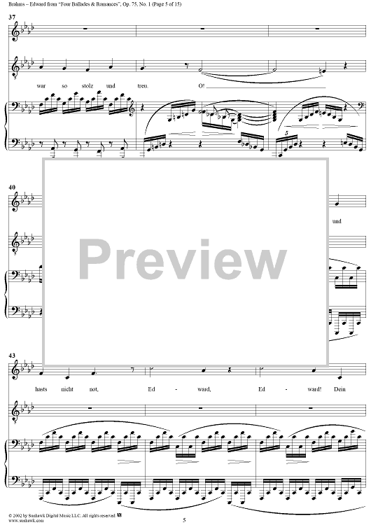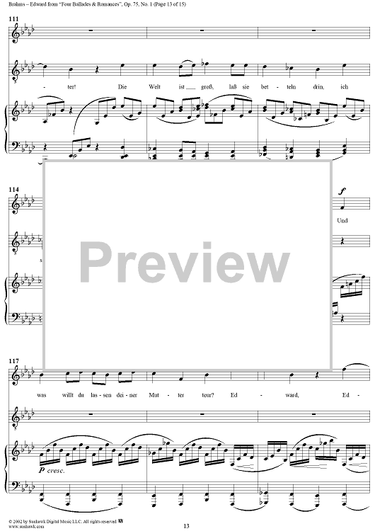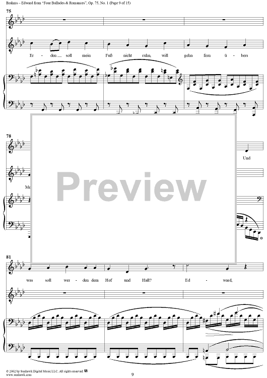 "Four Ballades & Romances, Op.75, No.1 Edward, "Dein Schwert Wie ists"" Sheet Music by Johannes Brahms