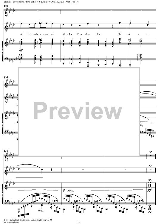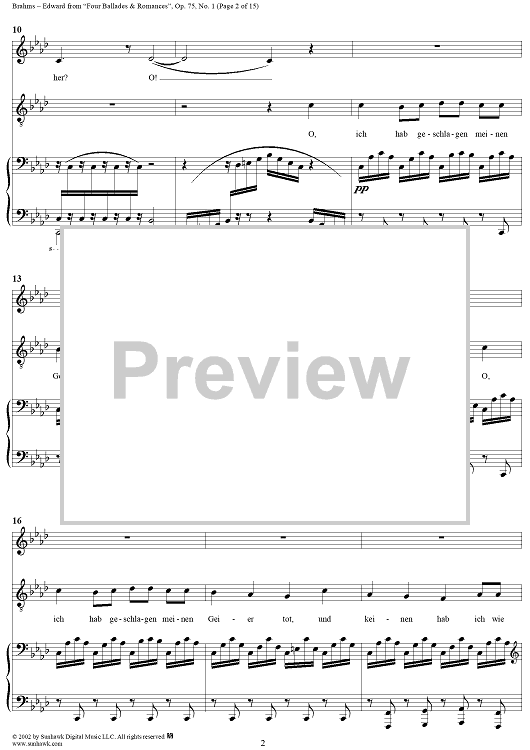 Digital Sheet Music for Four Ballades & Romances, Op.75, No.1 Edward, "Dein Schwert Wie ists" by Johannes Brahms scored for Vocal Duet/Piano; id:274564