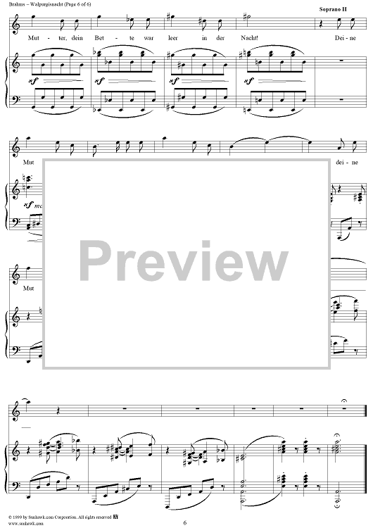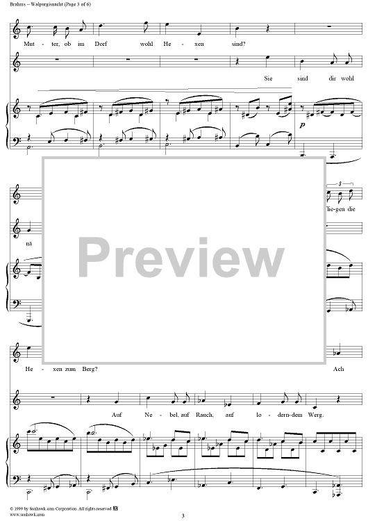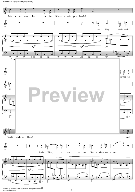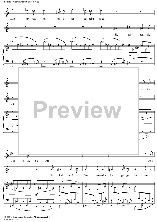 Digital Sheet Music for Four Ballades & Romances, Op.75, No.4 Walpurgisnacht, "Lieb Mutter, heut Nacht heulte Regen und Wind" by Johannes Brahms scored for Vocal Duet/Piano; id:275381