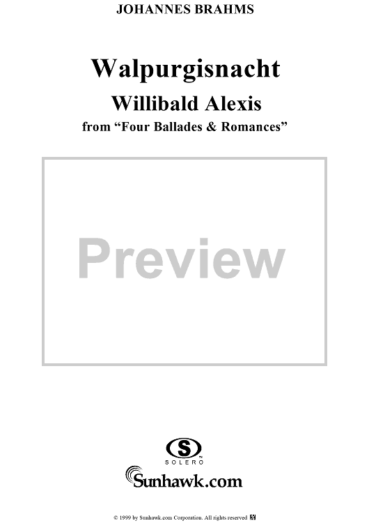 "Four Ballades & Romances, Op.75, No.4 Walpurgisnacht, "Lieb Mutter, heut Nacht heulte Regen und Wind"" Sheet Music by Johannes Brahms
