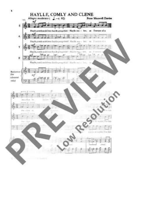 Digital Sheet Music for Four Carols - Score by Sir Peter Maxwell Davies scored for Mixed Choir (SATB) A Cappella or With String Quartet or 4 Woodwinds Optional; id:474400