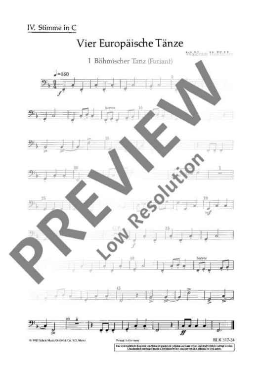 Digital Sheet Music for Four european Dances - 4th Part In C by Waldram Hollfelder, Willy Schneider scored for 4 Trombones Or Brass Instruments; id:485792