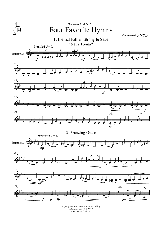 Digital Sheet Music for Four Favorite Hymns - Trumpet 3 by Various, John Jay Hilfiger scored for Trumpet Trio; id:410681