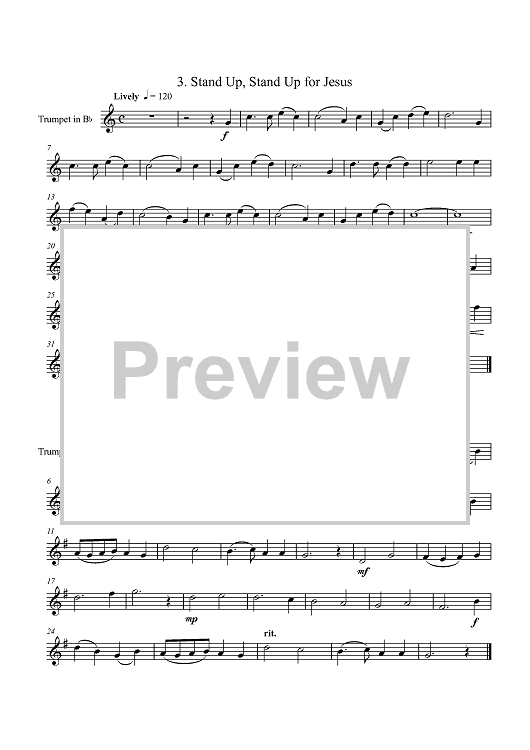 Digital Sheet Music for Four Favorite Hymns - Trumpet in B-flat by Various, John Jay Hilfiger scored for Brass Trio; id:410674