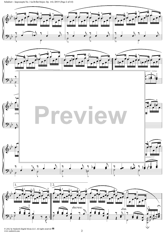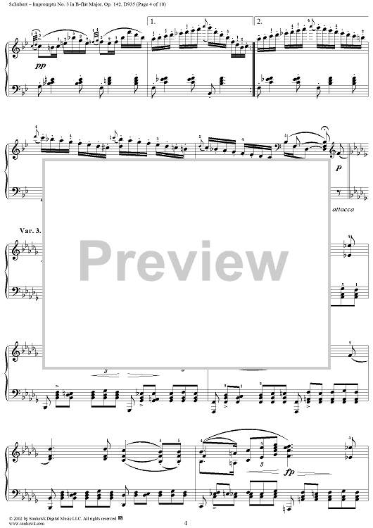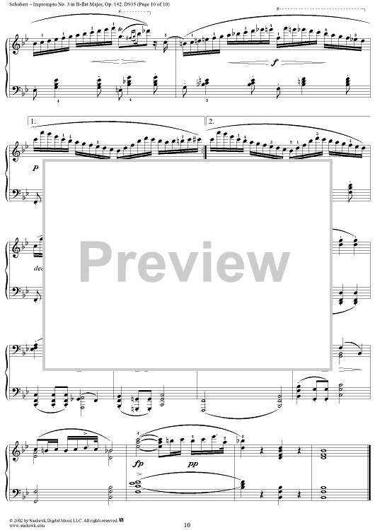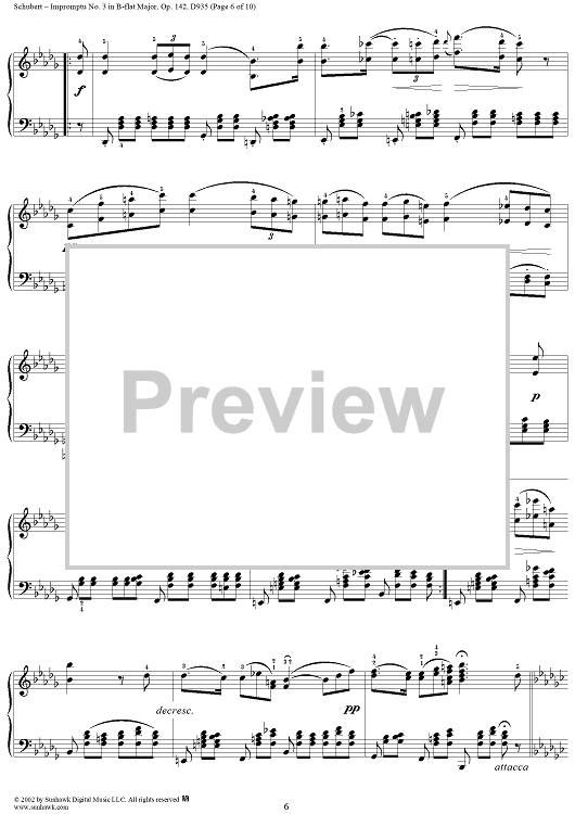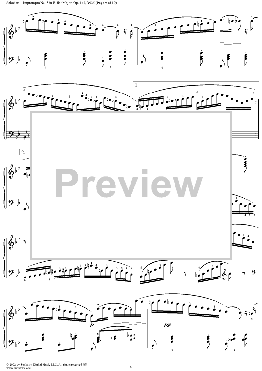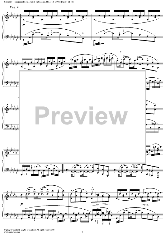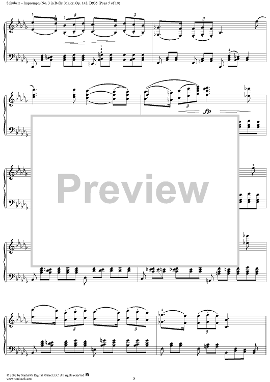 Digital Sheet Music for Four Impromptus for the pianoforte, Op.142 No.3, D935 by Franz Schubert scored for Piano Solo; id:256367