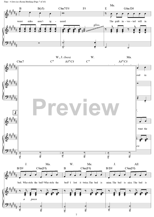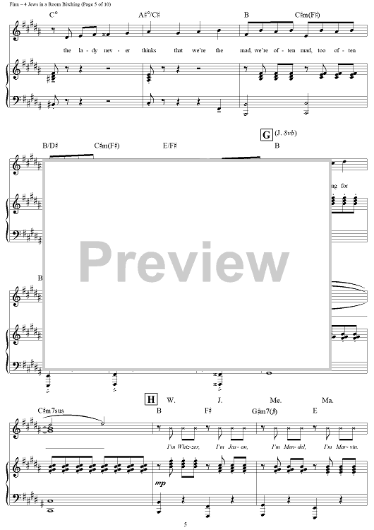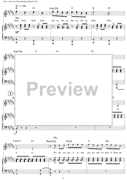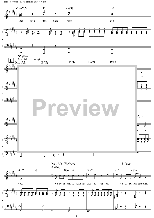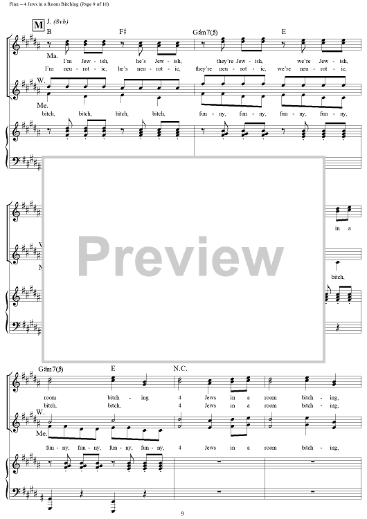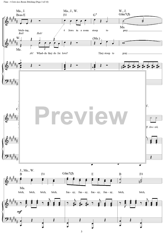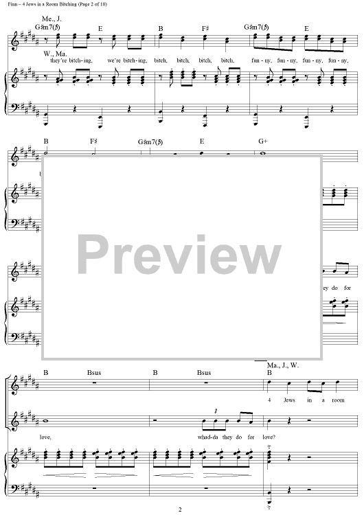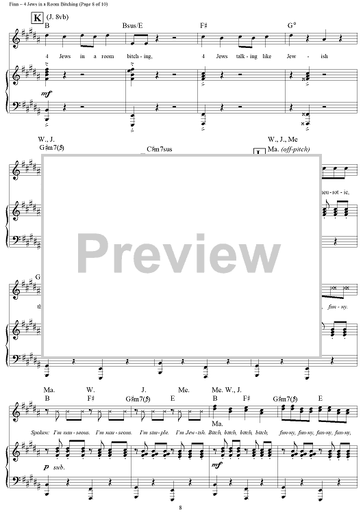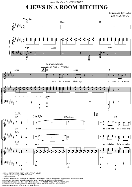 Digital Sheet Music for Four Jews in a Room Bitching by William Finn scored for Piano/Vocal/Chords; id:120453