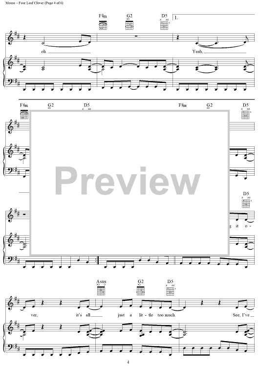 Digital Sheet Music for Four Leaf Clover by Abra Moore scored for Piano/Vocal/Chords; id:111959