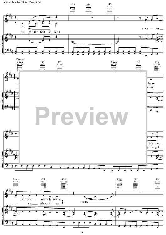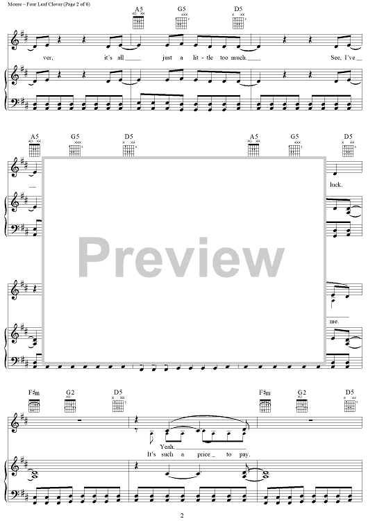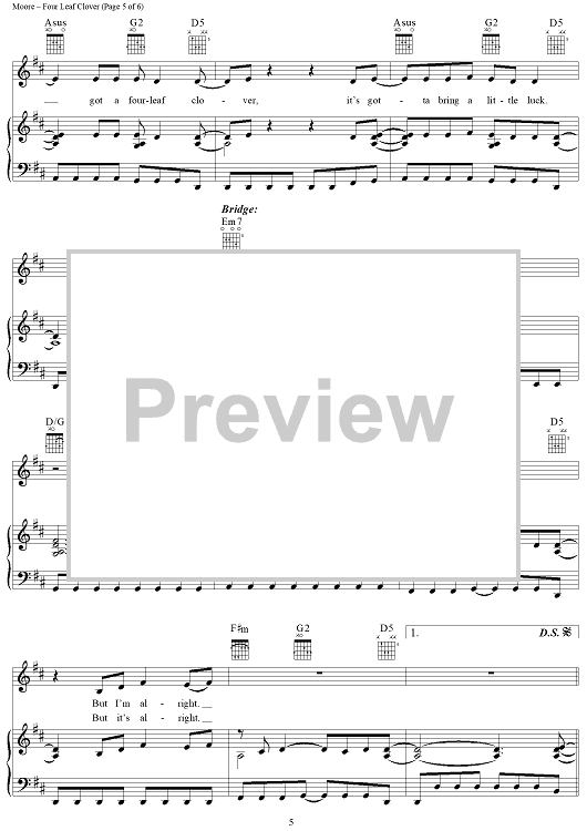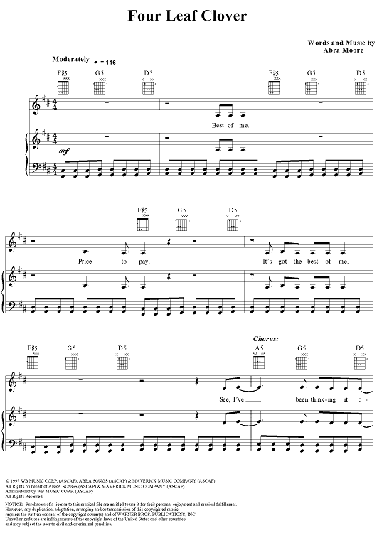 Digital Sheet Music for Four Leaf Clover by Abra Moore scored for Piano/Vocal/Chords; id:111959