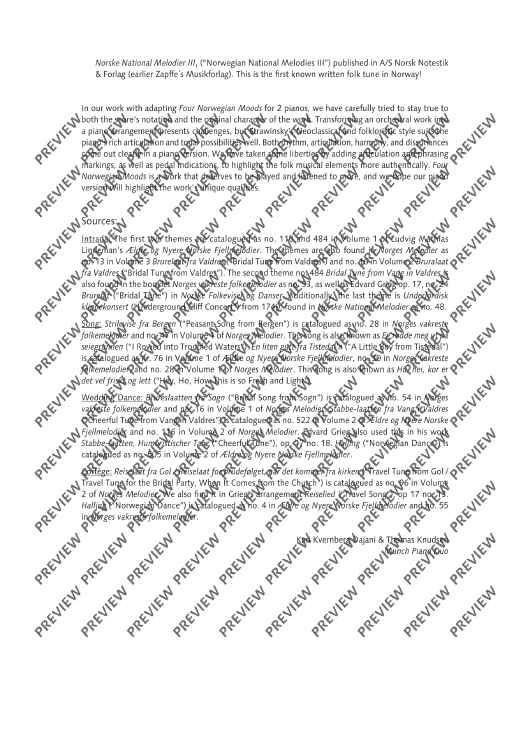 Strawinskys Orchesterwerk Four Norwegian Moods verwebt meisterhaft norwegische Volkslieder mit den eigenen musikalischen Ideen des Komponisten. Das norwegische Munch Piano Duo bewahrt in dem Arrangement die lyrischen Klangfarben des Originalwerks.