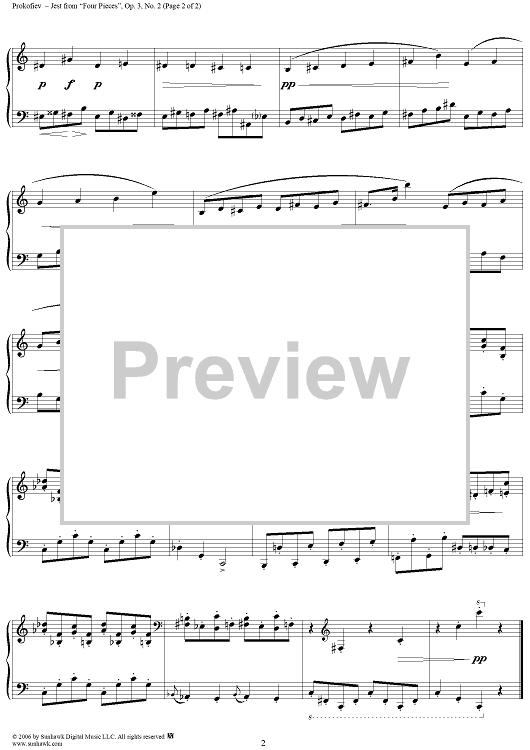 Digital Sheet Music for Four Pieces, Op. 3, No. 2, ''Jest'' by Sergei Prokofiev scored for Piano Solo; id:317007