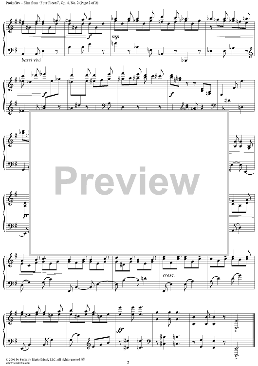 "Four Pieces, Op. 4, No. 2, ''Elan''" Sheet Music by Sergei Prokofiev