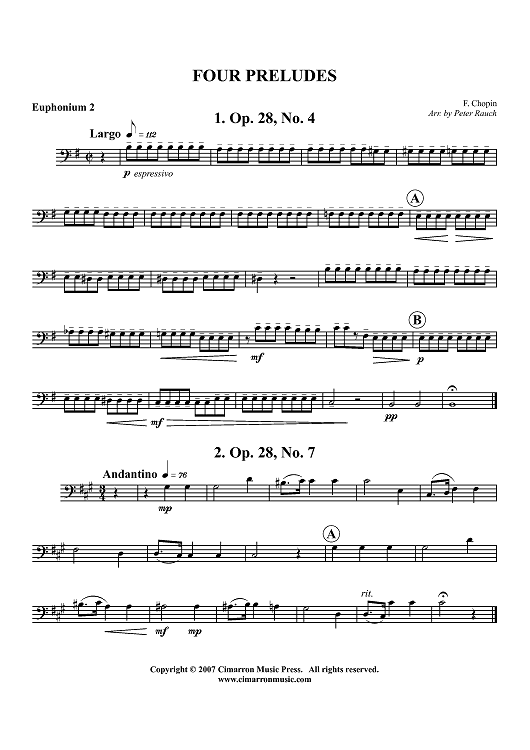 "Four Preludes - Euphonium 2 BC/TC" Sheet Music by Frederic Chopin