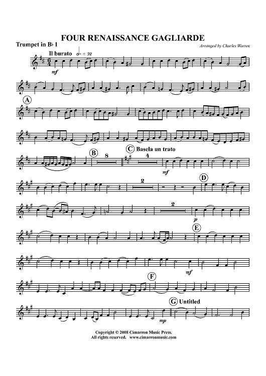 Digital Sheet Music for Four Renaissance Gagliarde - Trumpet 1 in Bb by Various, Charles Warren scored for Brass Quintet; id:424369