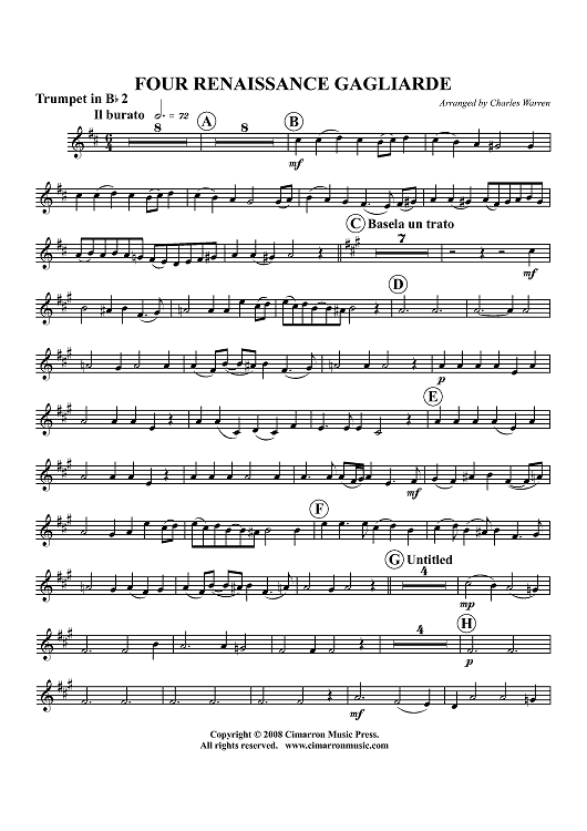 Digital Sheet Music for Four Renaissance Gagliarde - Trumpet 2 in Bb by Various, Charles Warren scored for Brass Quintet; id:424370