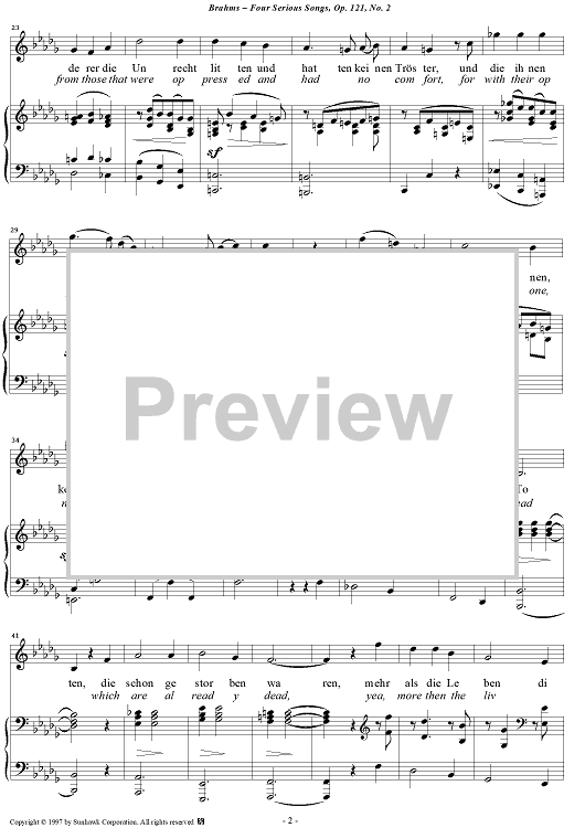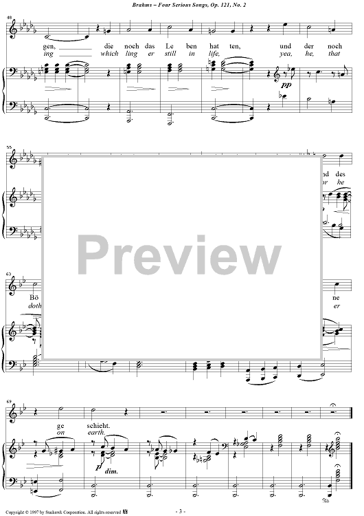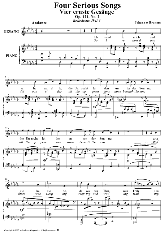 Digital Sheet Music for Four Serious Songs, op. 121, no. 2: So I returned and did consider by Johannes Brahms scored for Voice/Piano; id:94616