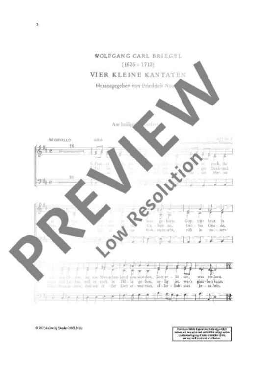 Digital Sheet Music for Four small cantatas - Choral Score by Wolfgang Carl Briegel scored for Mixed Choir, Strings And Basso Continuo; id:492822