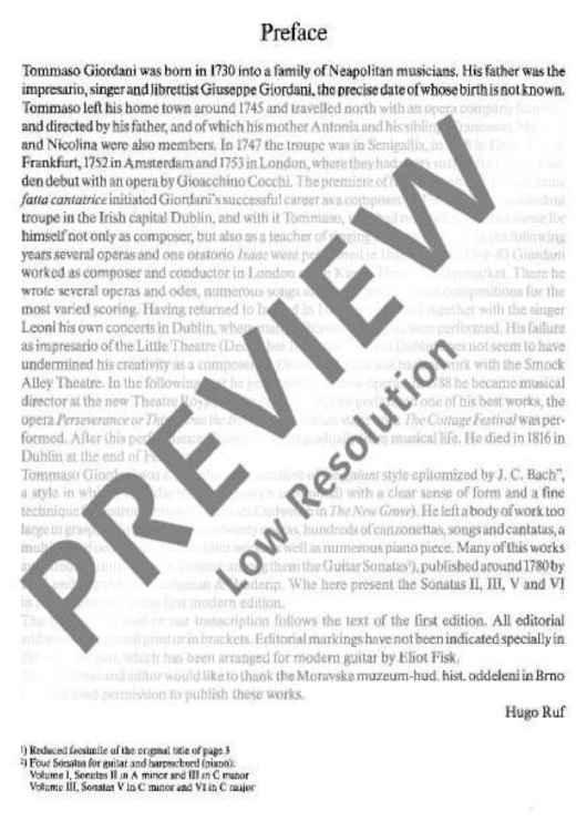 Digital Sheet Music for Four Sonatas by Tommaso Giordani scored for Guitar And Harpsichord (piano); id:475859