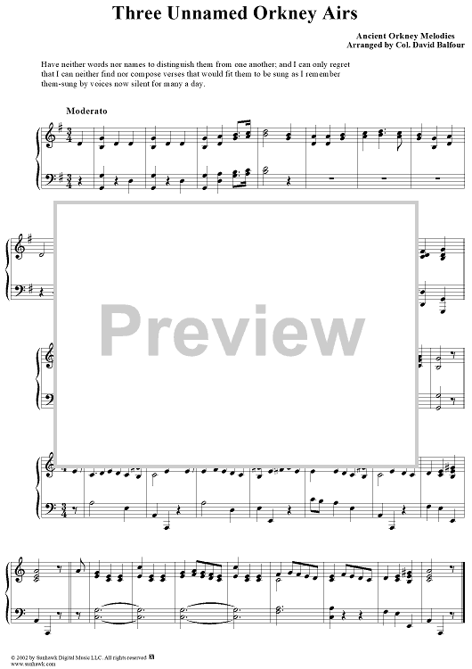 Digital Sheet Music for Four Unnamed Orkney Airs by Col. David Balfour scored for Voice/Piano; id:276761
