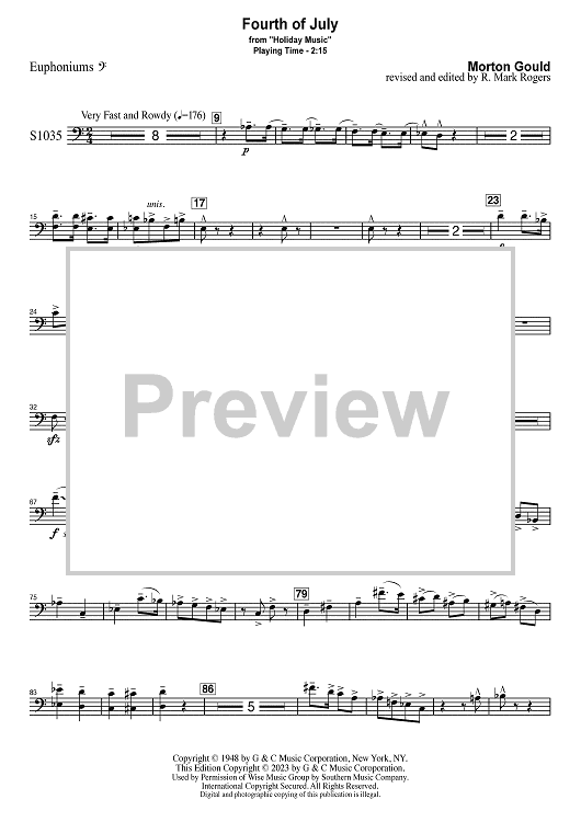 "Fourth of July - Euphoniums TC/BC" Sheet Music by Morton Gould